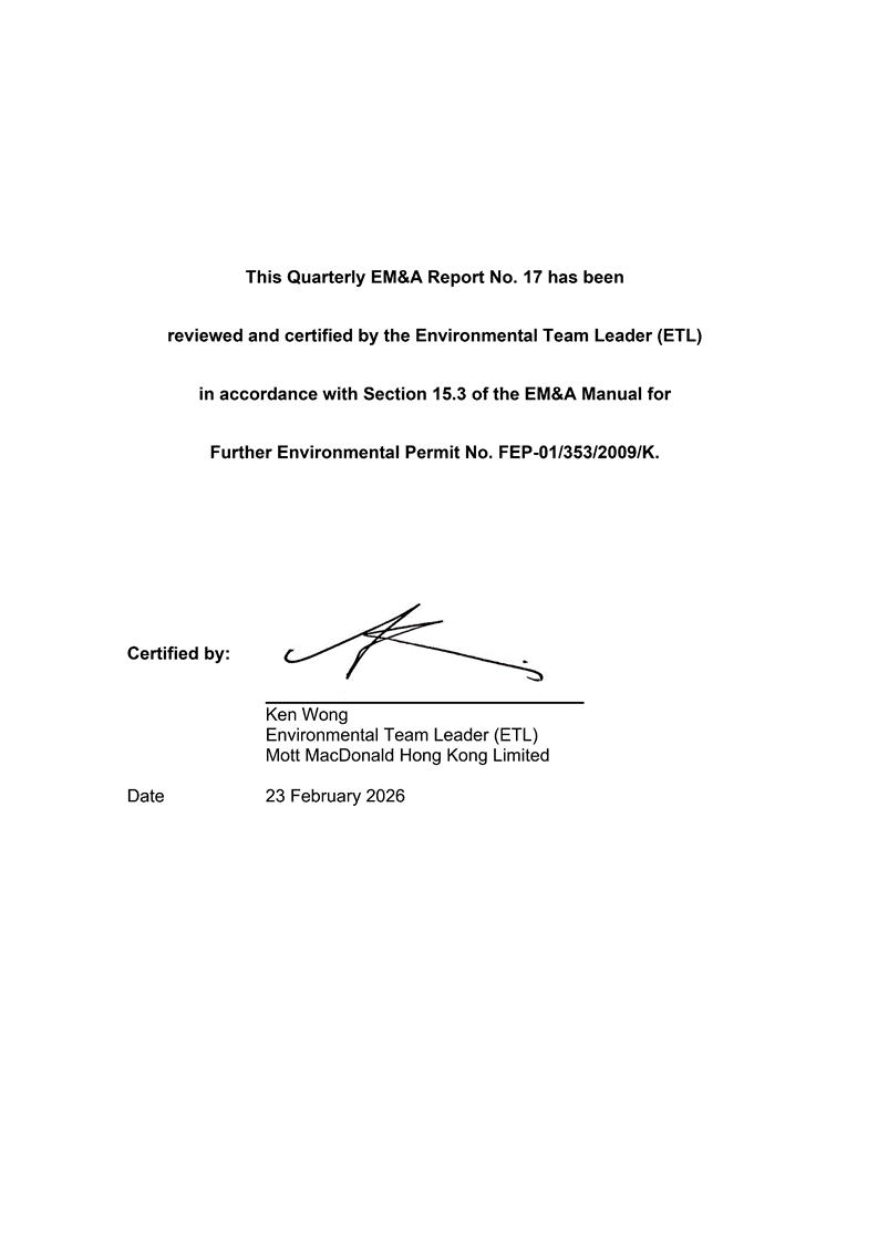 This is the 17th Construction Phase Quarterly EM&A Report for the Project which summarises the monitoring and audit findings of the EM&A programme during the reporting period from 1 October to 31 December 2025.